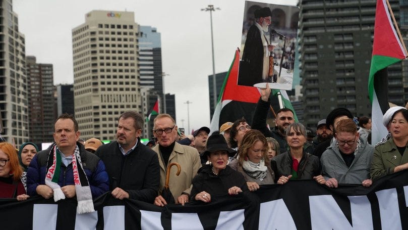 They can’t feign ignorance. They’re standing with the same crowd who marched on the Opera House on October 9, railing against Jews, days after the massacre of 1,200 Israelis by Hamas — and before any Israeli response.
