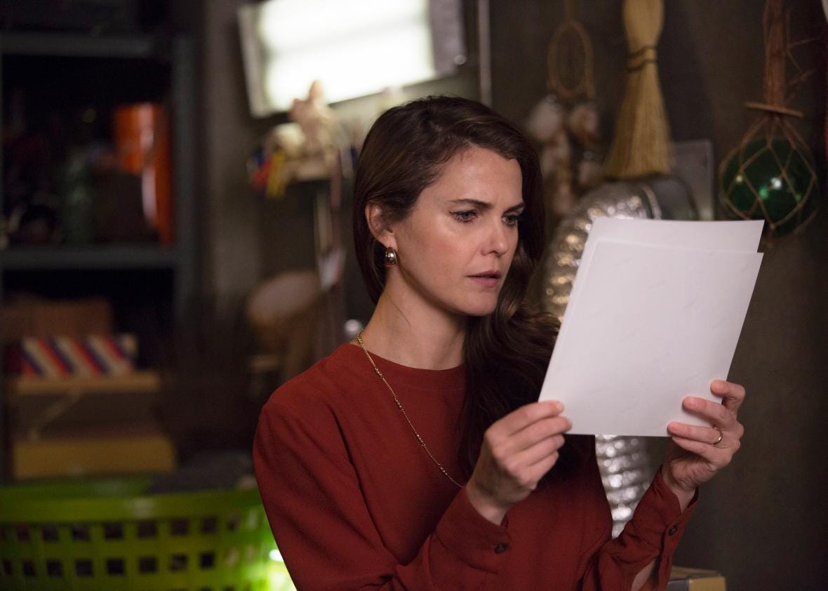 Their marriage survives these slings and arrows because their marriage is hard, because marriage is hard. But because The Americans begins with the premise that their marriage is a cover, it spends less time documenting its pitfalls than its promise. The subterranean tenderness that builds over time. That dwells in the knowing glance, in a long silence. How intimacy and love can grow from duty. Sprigs flowering around cold rails. The all-consuming nature of a fight with a spouse followed by the tenderness of reconciliation. Joint suffering over children, work. That thing where wives sometimes just know what their husbands need, how they grasp them in a moment of vulnerability and love them despite whatever feuding might trail them. The Jennings’ small acts — gestures, looks — of marital love are the sparks that sustain the show. In the final episode of Season 5, Elizabeth tells a young protege that he will fail in the spy business without a partner. She could have been talking about life. You need someone to get through the vicissitudes of life. And there is no institution formidable enough for that task than marriage. The Americans is a story about marriage dressed up as a spy thriller. The show’s heart isn’t into all the Soviet plot machinations. The tribulations of Elizabeth and Philip’s marriage is the beating heart of the show.